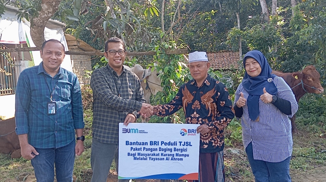 Ralitafm.pamekasankab.go.id – PT. Bank Rakyat Indonesia (BRI) Persero Tbk. menyerahkan bantuan BRI Peduli Tanggung Jawab Sosial Lingkungan (TJSL) berupa hewan qurban sapi paket pangan danging bergizi bagi masyarakat kurang mampu, melalui yayasan Al-Ahrom desa Bulangan Haji kecamatan Pegantenan kabupaten Pamekasan, Kamis (05/06/2025) pagi.