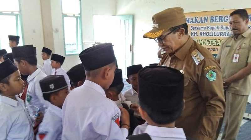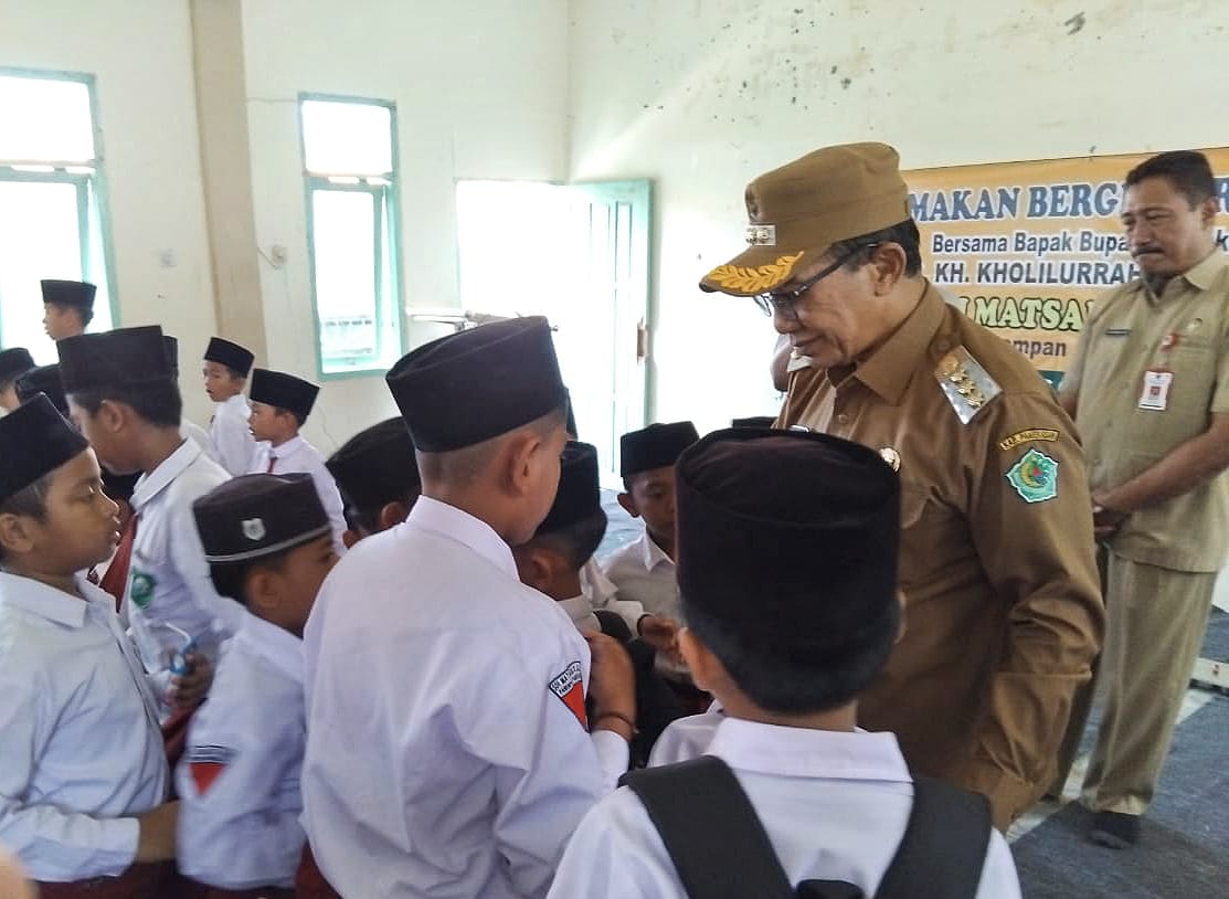 Bupati Pamekasan KH Kholilurrahman bersama dengan puluhan siswa Sekolah Dasar Islam (SDI) Matsaratul Huda Desa Panempan, menikmati menu Makan Bergizi Gratis (MBG) Senin (6/10/2025) pagi. Makan bersama tersebut, juga dalam rangka untuk memastikan program Presiden Prabowo itu dapat berjalan dengan aman dan lancar di Kabupaten Pamekasan.